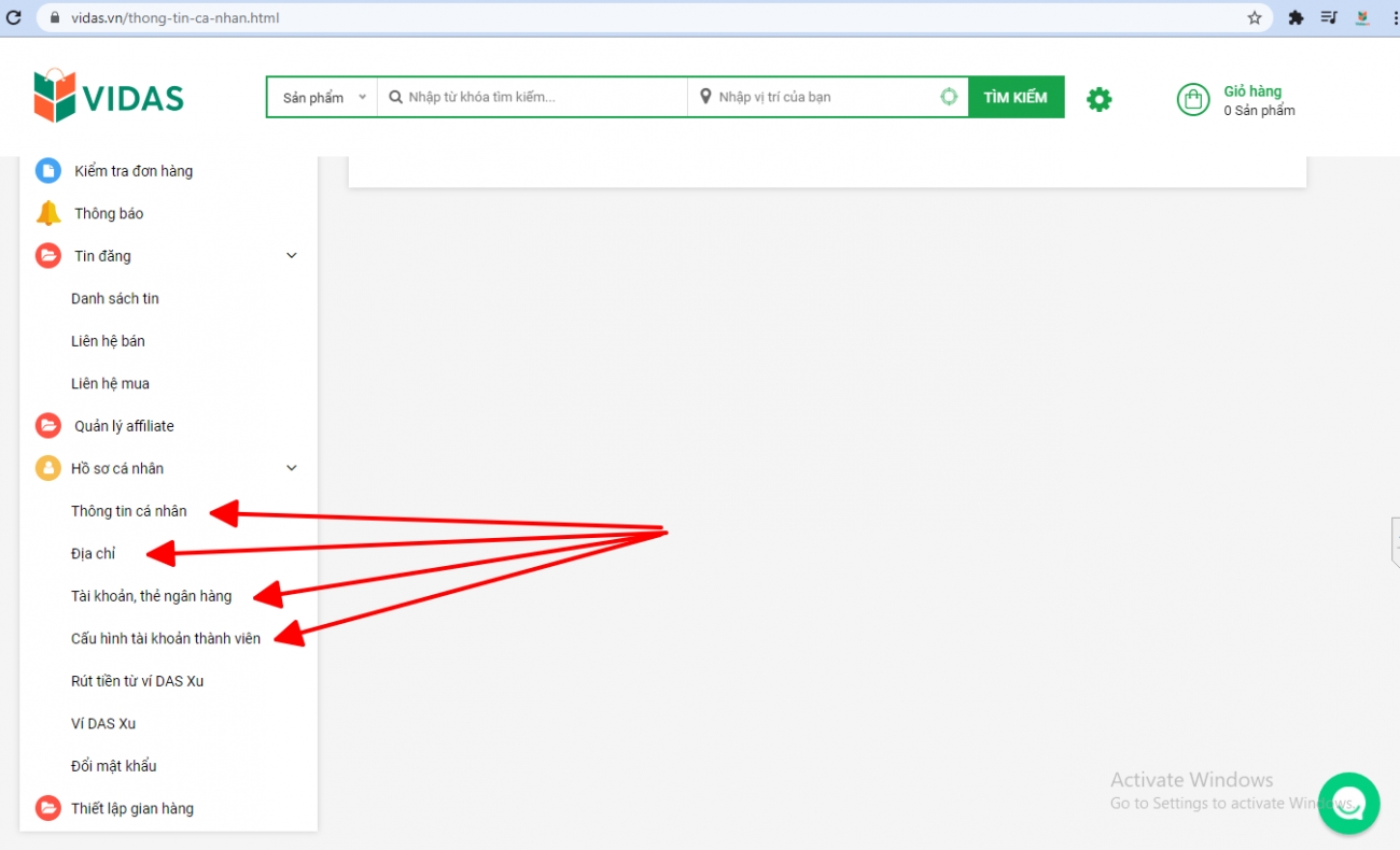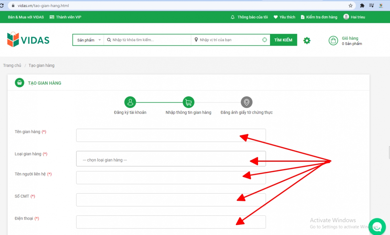 Người bán tiến hành đăng bán các sản phẩm của mình bình thường và các sản phẩm sẽ được đưa về chung trong gian hàng vừa được tạo lập. Người bán có thể đăng nhập vào tài khoản trên sàn VIDAS.VN của mình, di chuột đến tên mình và click vào dòng chữ Xem Gian Hàng để kiểm tra lại thông tin.