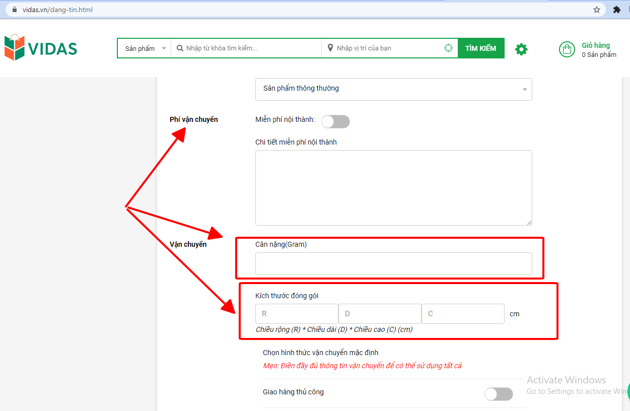 +Sau khi nhấn nút Thêm Sản Phẩm Mới , để thêm và bán sản phẩm, người dùng cần nhập đầy đủ các thông tin theo yêu cầu của VIDAS.VN , các thông tin có kèm theo dấu (*) màu đỏ là các thông tin bắt buộc phải điền: